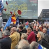 Friedensbewegung setzt deutliches Zeichen gegen die zunehmende Kriegsgefahr und Militarisierung der Gesellschaft Vereint gegen Völkermord, soziale Verrohung und Sozialabbau und für das Ende von Kriegen und Hass.