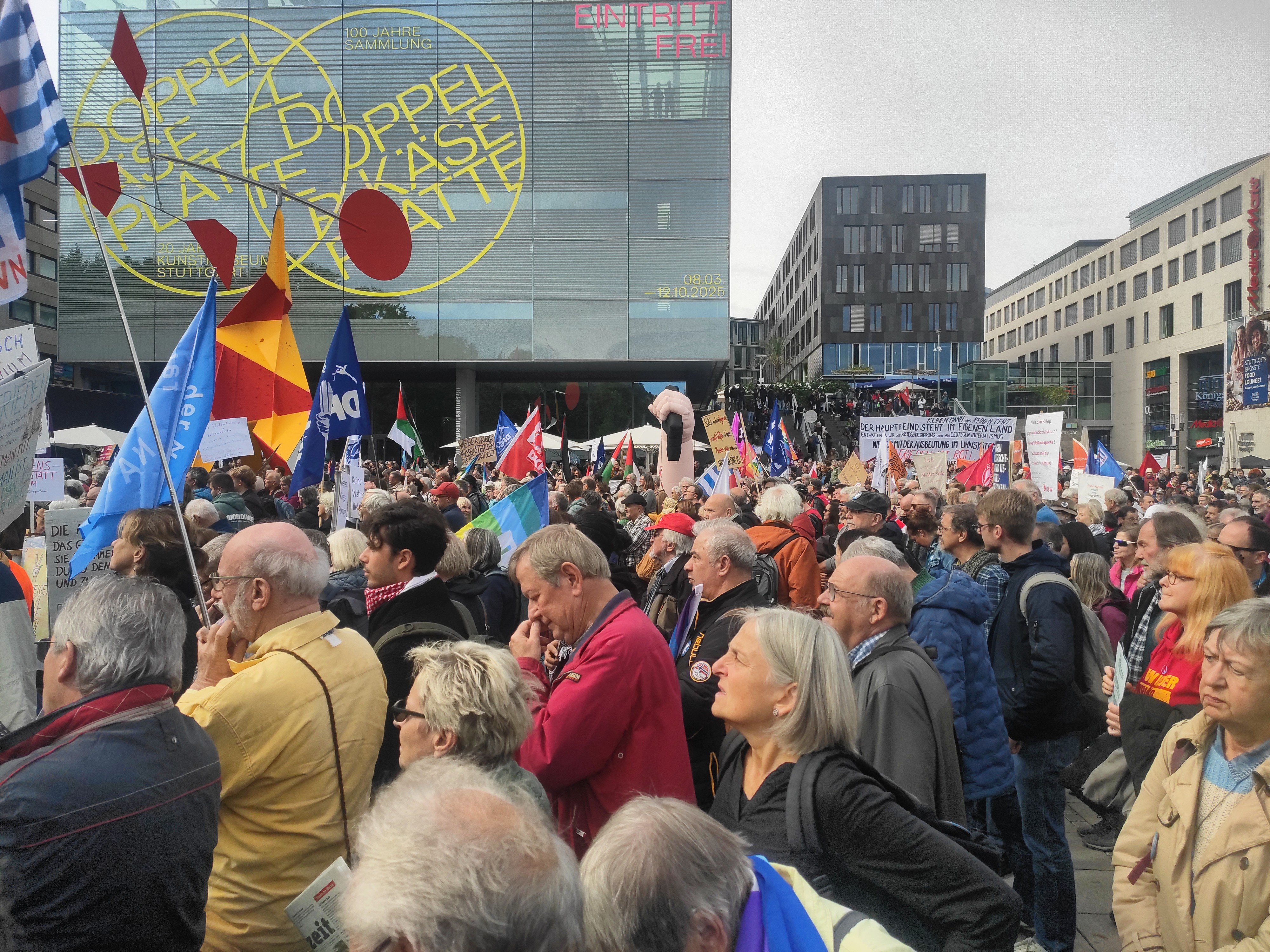 20.000 Menschen in Berlin und 15.000 in Stuttgart haben heute ihr Bekenntnis für Frieden und Diplomatie, gegen Krieg und Hochrüstung auf die Straße getragen. Der Vorbereitungskreis „Nie wieder kriegstüchtig! Stehen wir auf für Frieden“ vereinte erfolgreich eine gewachsene soziale und politische Opposition gegen die Hochrüstungspläne und die Verschuldungspolitik der Bundesregierung. Eine Widerstandsbewegung, die sich gegen den sozialen Kahlschlag wehrt, der mit der hochgefährlichen Aufrüstung der Bundesregierung einhergeht, weil das Geld für marode Schulen, den Öffentlichen Nahverkehr, das Gesundheitswesen, die Kultur sowie Klimaschutz und globale Entwicklung gebraucht wird.