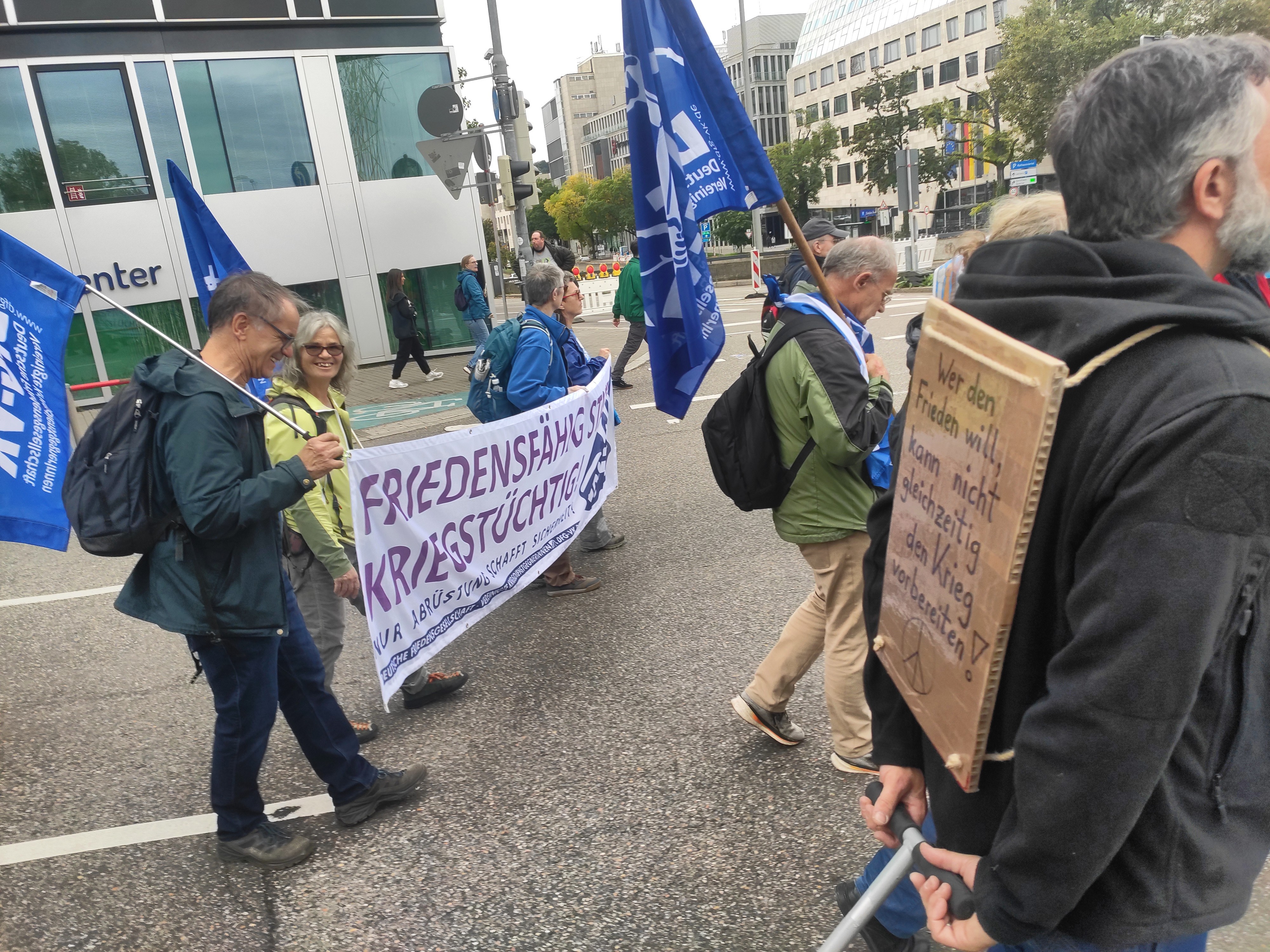 Mit den Demos in Berlin und Stuttgart hat die Friedensbewegung gezeigt, dass sie noch da ist und die Hochrüstungspläne der Bundesregierung, die auch von den Grünen und der AfD unterstützt werden, nicht hinnimmt. In Berlin haben etwa 20.000 Menschen demonstriert, in Stuttgart etwa 15.000. Aus Augsburg sind bei dem von der AFI organisierten Termin etwa 40 Menschen mit dem Zug nach Stuttgart gefahren - vielen Dank an alle, die mitgemacht haben. Fotos von beiden Demos hat der Vorbereitungskreis „Nie wieder kriegstüchtig! 3.10.“ hier auf Flickr online gestellt. Die Texte der Reden sind hier zu finden: https://friedensdemo0310.org/berlin https://friedensdemo0310.org/stuttgart.