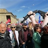 Friedensbewegung setzt deutliches Zeichen gegen die zunehmende Kriegsgefahr und Militarisierung der Gesellschaft Vereint gegen Völkermord, soziale Verrohung und Sozialabbau und für das Ende von Kriegen und Hass.