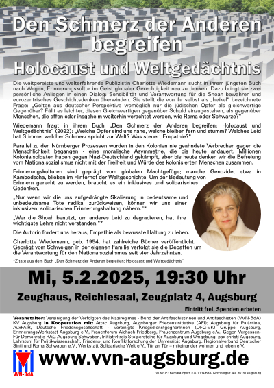 Veranstalter: Vereinigung der Verfolgten des Naziregimes - Bund der Antifaschistinnen und Antifaschisten (VVN-BdA) KV Augsburg